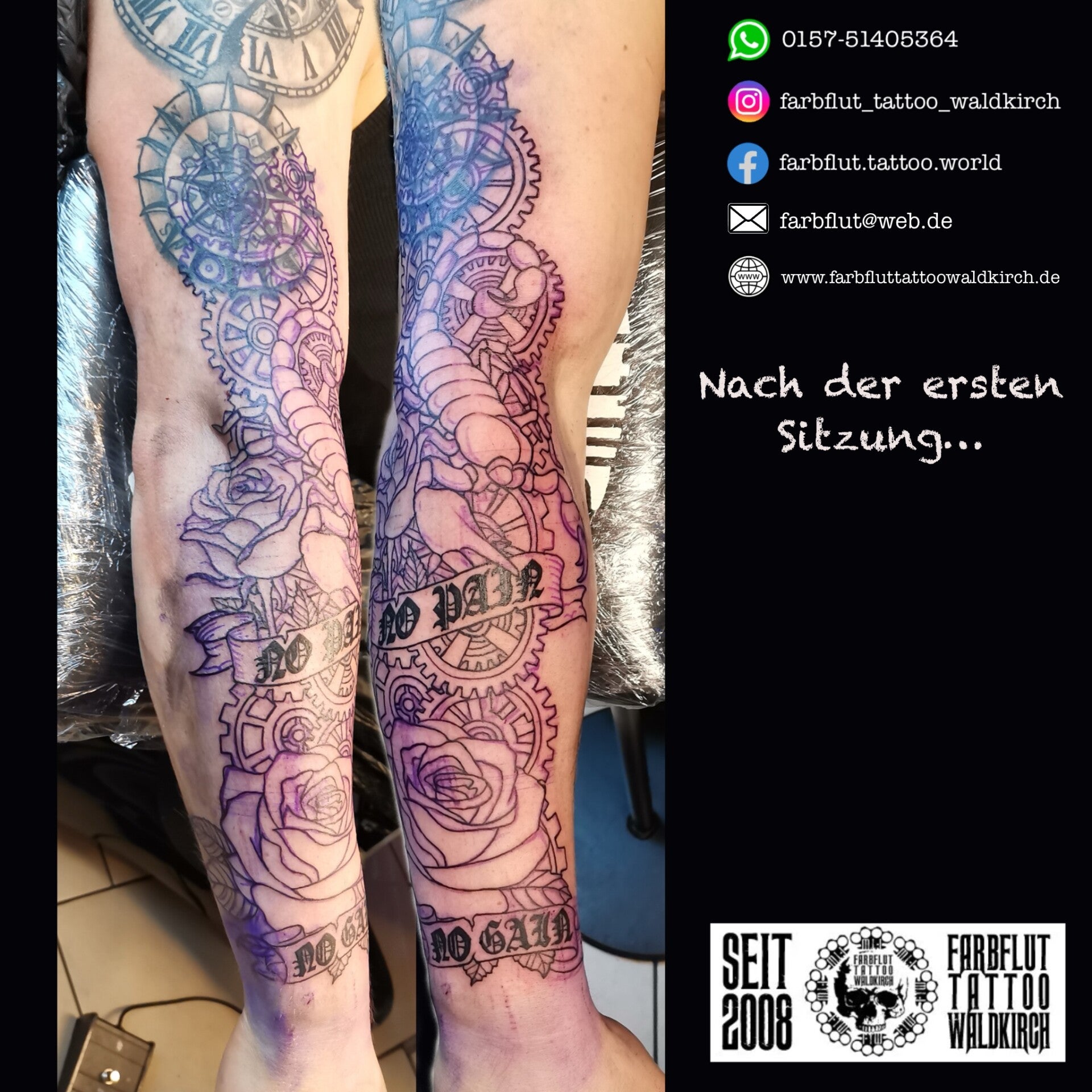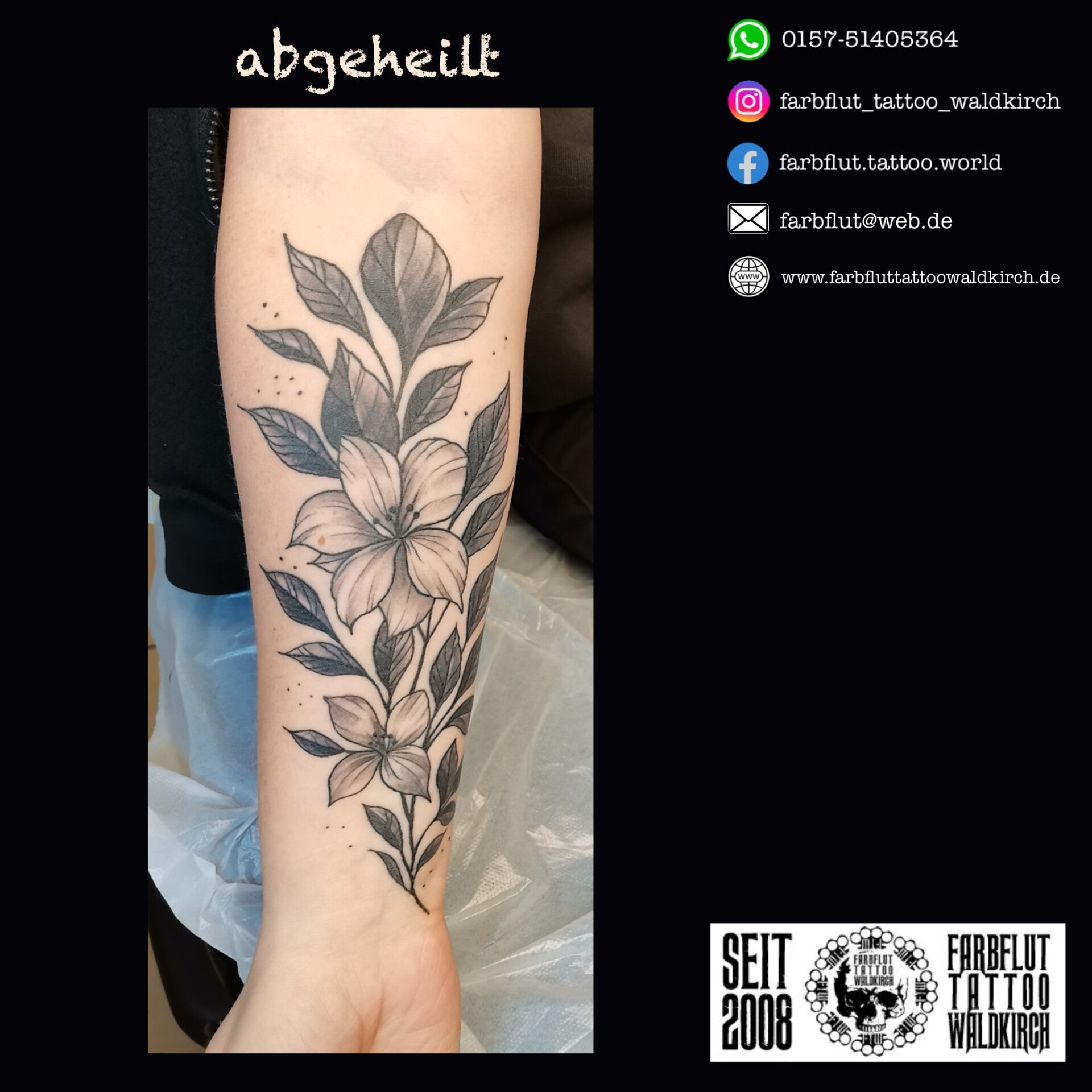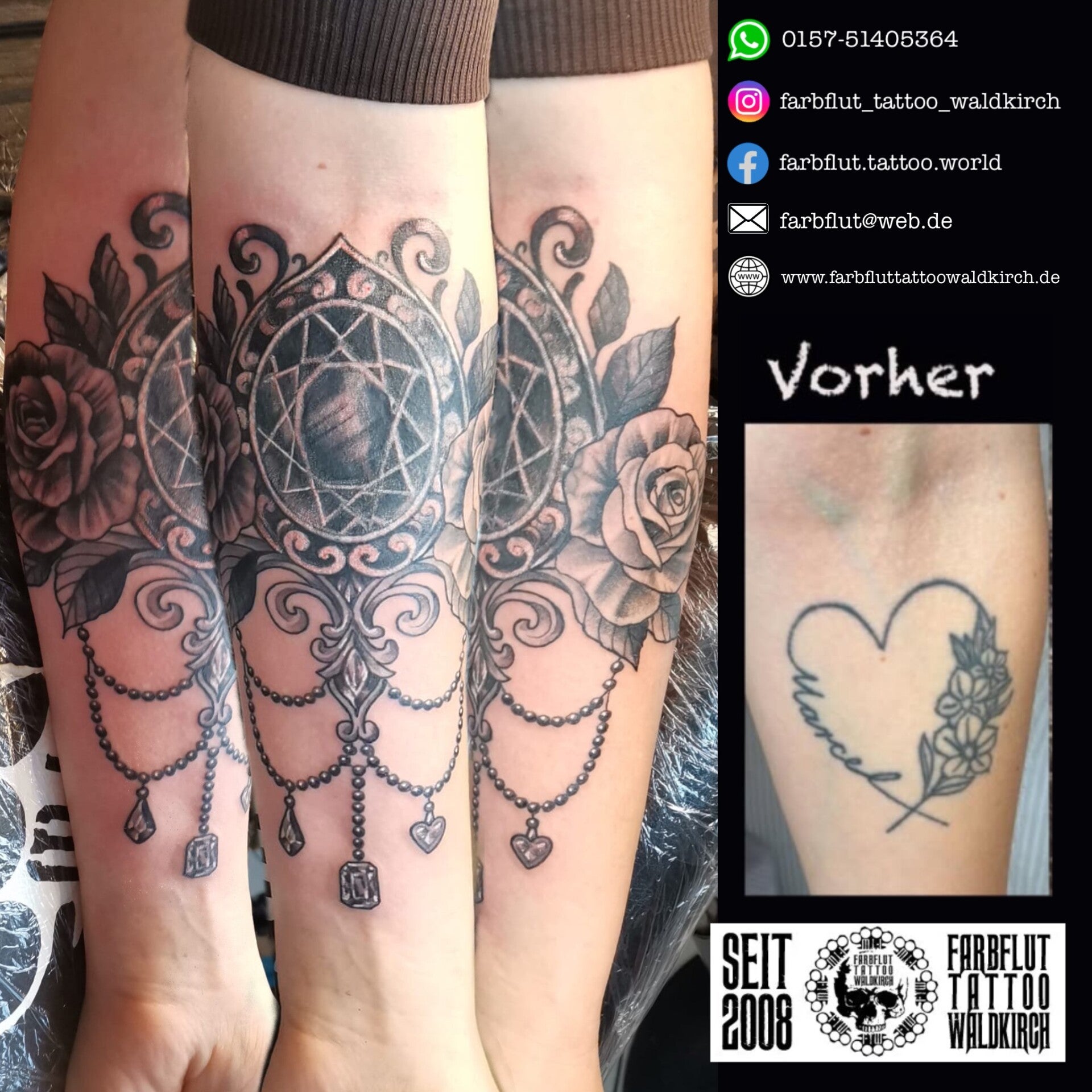 Meine Galerie präsentiert eine Vielzahl von Tattoos und Überdeckungen (Cover-Up Tattoos), die ich für meine Kundinnen und Kunden erstellt habe. Jedes Kunstwerk ist sorgfältig gestaltet und spiegelt die Persönlichkeit und Ästhetik des Trägers wieder. Lassen Sie sich gerne von den Fotos inspirieren, um mit mir gemeinsam Ihr persönliches Unikat zu entwerfen.