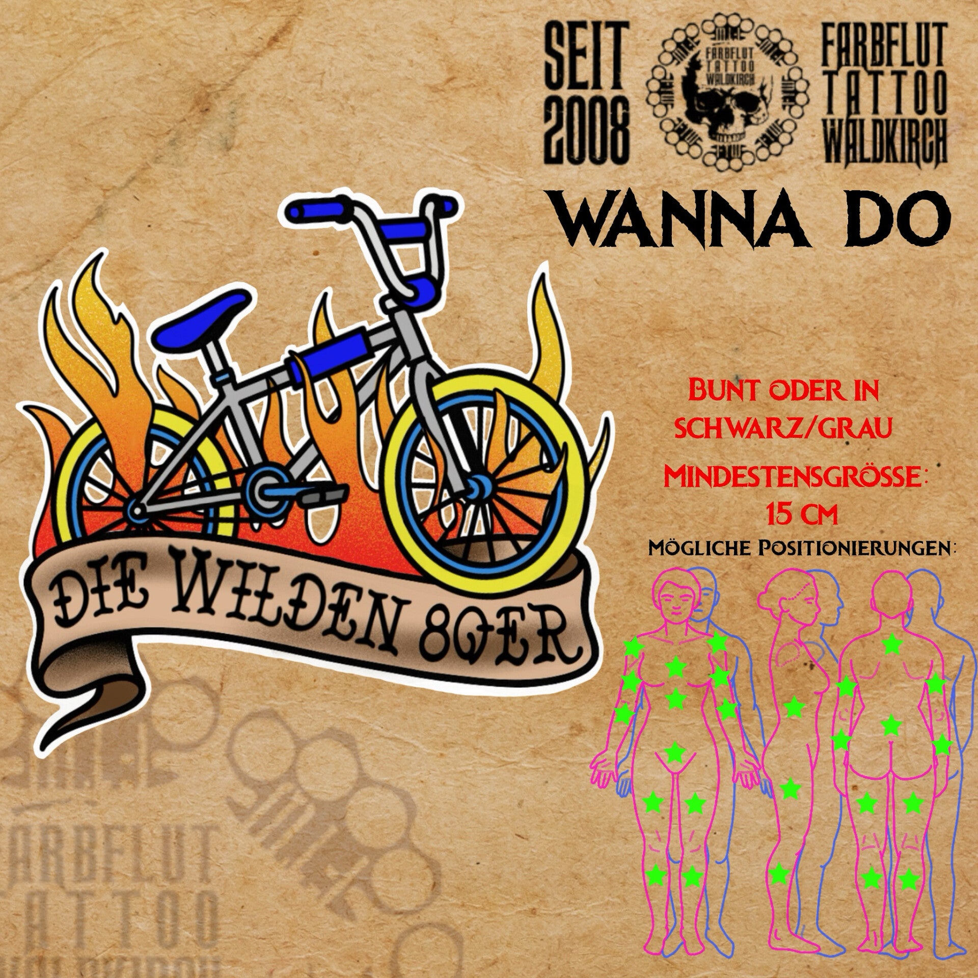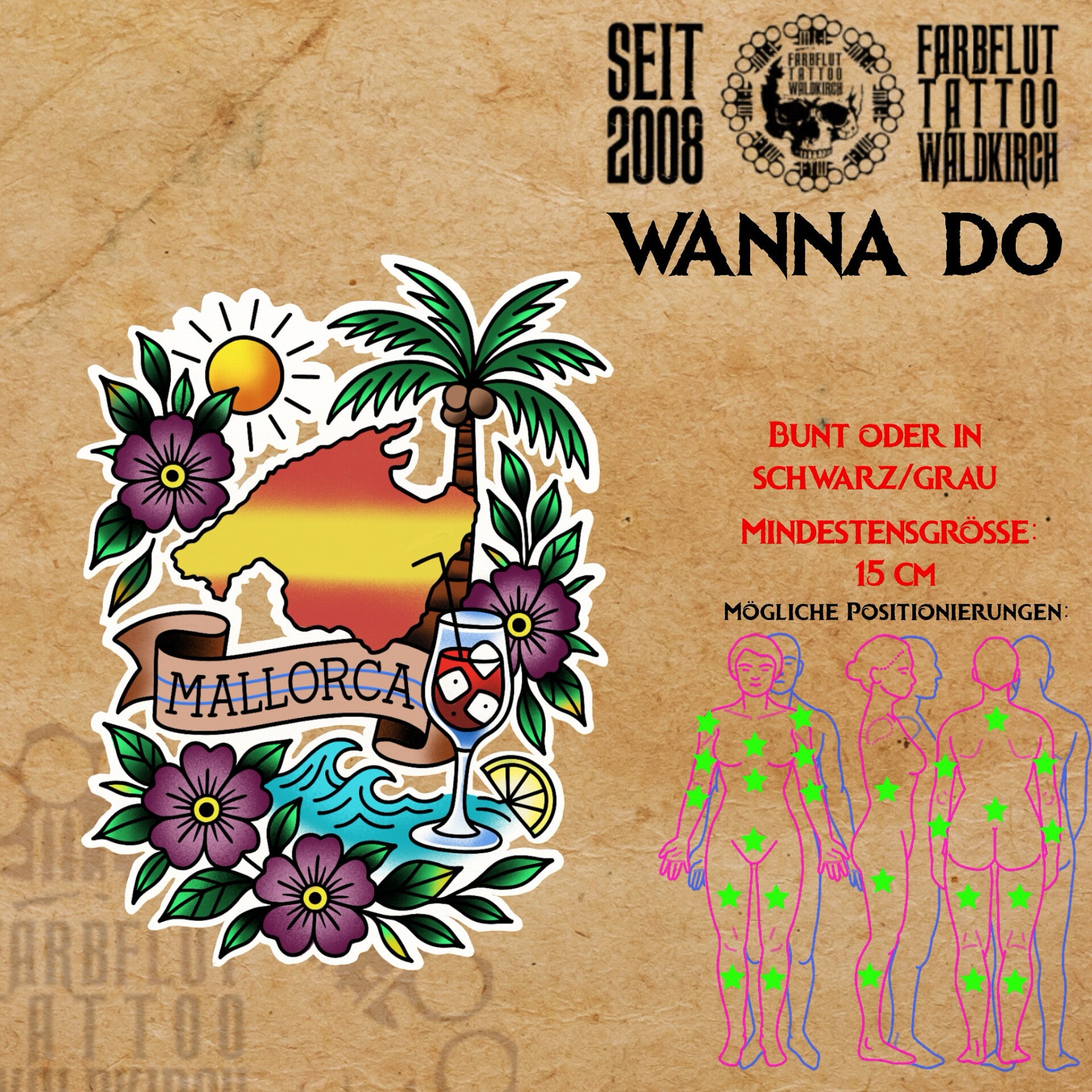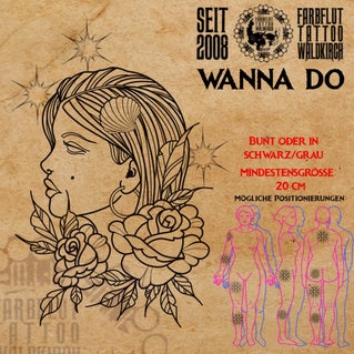 Ich biete eine Reihe unterschiedlichster Wanna-Do's an. Diese sind selbst gezeichnete Tattoovorlagen, die ich gerne stechen würde. Sie sollen vom Motiv her so übernommenen werden und sind deshalb günstiger. Teilweise besteht die Option zwischen Farbe oder Schwarzgrau zu wählen. Die Mindestgröße steht immer dabei.